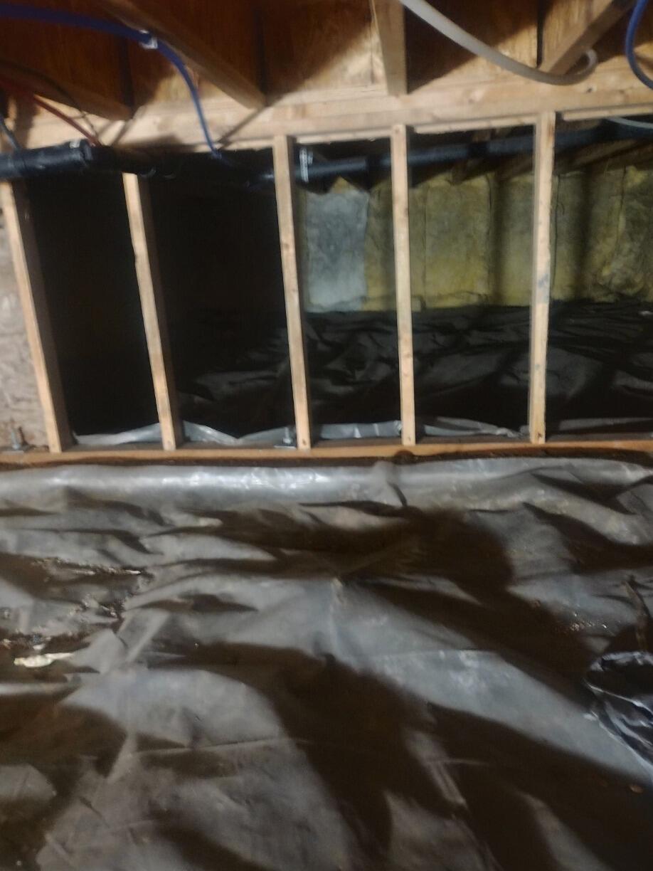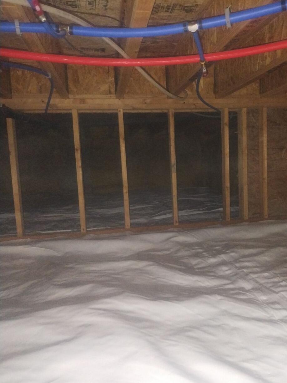 Did you know that the earth has a very high humidity in the soil? That's why dirt crawl spaces tend to be very humid environments, allowing mold, wood rot, insects, critters, bad odors, and more. That's why we recommend our CleanSpace© encapsulation system, which provides a heavy, 20 mil thick liner (over twice as thick as industry liners) manufactured in seven layers and with UltraFresh©, an antimicrobial additive. It's an attractive, tough crawl space liner that is vapor-proof and warrantied for over 25 years against rips and tears. Below our CleanSpace©, we installed drainage matting, which adds additional room for water drainage, as well as added durability, puncture resistance, and a thermal break for the encapsulation system. If you'd like a similar treatment for your home, don't hesitate to contact us today for a FREE estimate!