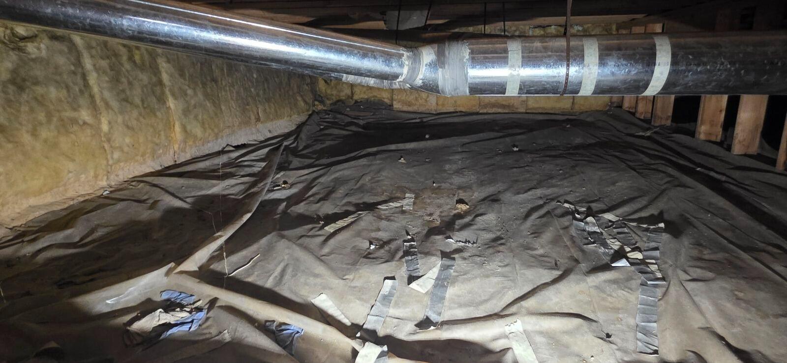 The flimsy, thin liner in this home's crawl space was allowing a lot of water vapor and moisture to come through, and create a musty, moldy environment in the crawl space. To cut off the water vapor, this homeowner asked for us to install our heavy, 20 mil thick, antimicrobial CleanSpace© liner with Drainage Matting (for added durability and drainage space) and SilverGlo© crawl space insulation (for superior energy savings). Now, the home no longer smells moldy and the floors are warmer in winter than ever before! Contact us today for a FREE estimate for your home.