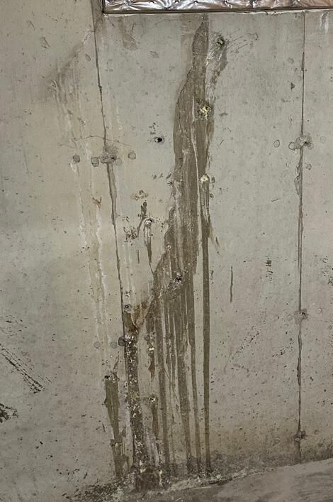 Polyurethane injection for this basement foundation wall crack that was leaking. Polyurethane injection is a process in which a special resin is injected into a crack, hole, joint or other opening in concrete. The resin reacts with water to form an effective flexible waterproof seal within the wall.