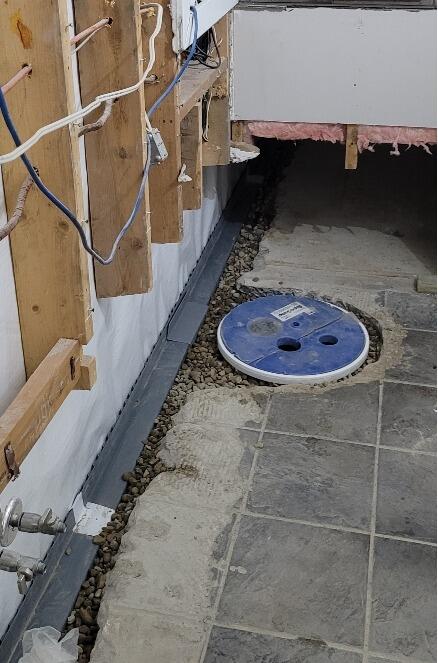Due to failed external weeping tile, this home was experiencing a flooding basement every time it rained heavily. In order to permanently keep this basement dry, we installed our WaterGuard drainage system with CleanSpace vapour barrier, and tied it all in to our SuperSump.
