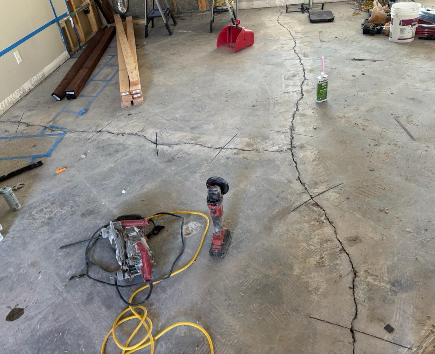 A homeowner in Cave Creek, AZ noticed a long structural crack running across their garage slab. While hairline surface cracks are common in Arizona concrete, this crack showed signs of movement and separation that required structural reinforcement.