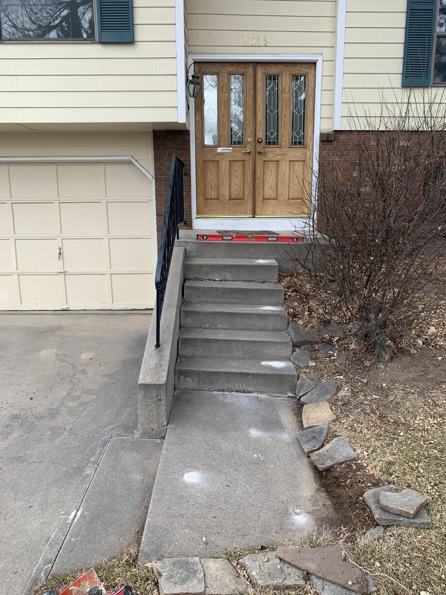 These front steps in Fort Collins were sinking significantly making it a challenge to get in the front door safely. Our crew lifted them back to their original place with Polylevel foam, and sealed all joints and cracks with Nexus Pro to prevent any water from getting under the slabs.