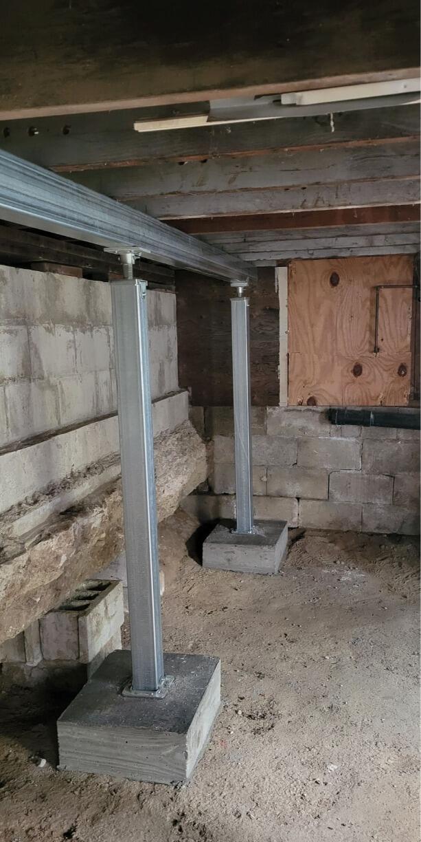 These steel beams ensure permanent support and stabilization to the entire home above, leaving the homeowner with great peace of mind.