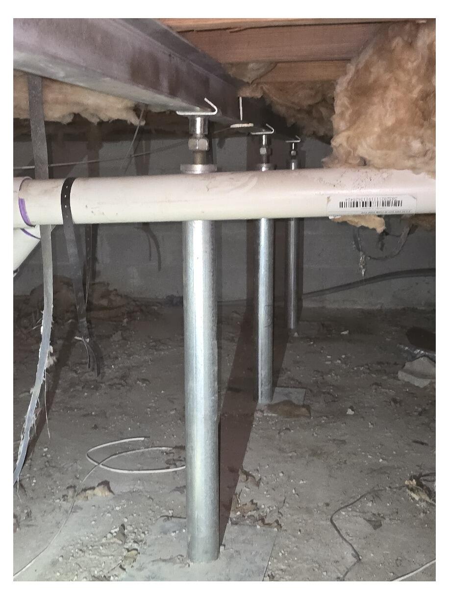 Our team replaced these failing supports with SmartJack Support Jacks. Made of galvanized steel, SmartJacks are fully adjustable and designed to provide reliable, long-term stabilization. By installing them along the main beams, we were able to restore stability to the home, correct floor sagging, and give the homeowner a permanent solution they can trust.