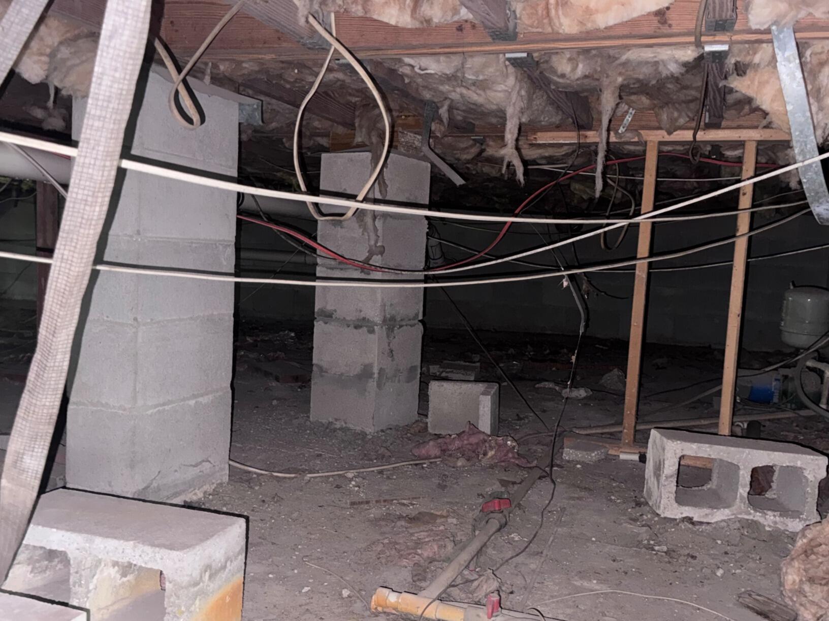 This Jacksonville crawl space was showing serious structural concerns, including sagging floors and makeshift block piers that were no longer providing stable support. Over time, shifting soil and moisture damage can cause block columns and wood framing to weaken, leading to uneven floors and compromised safety inside the home.
