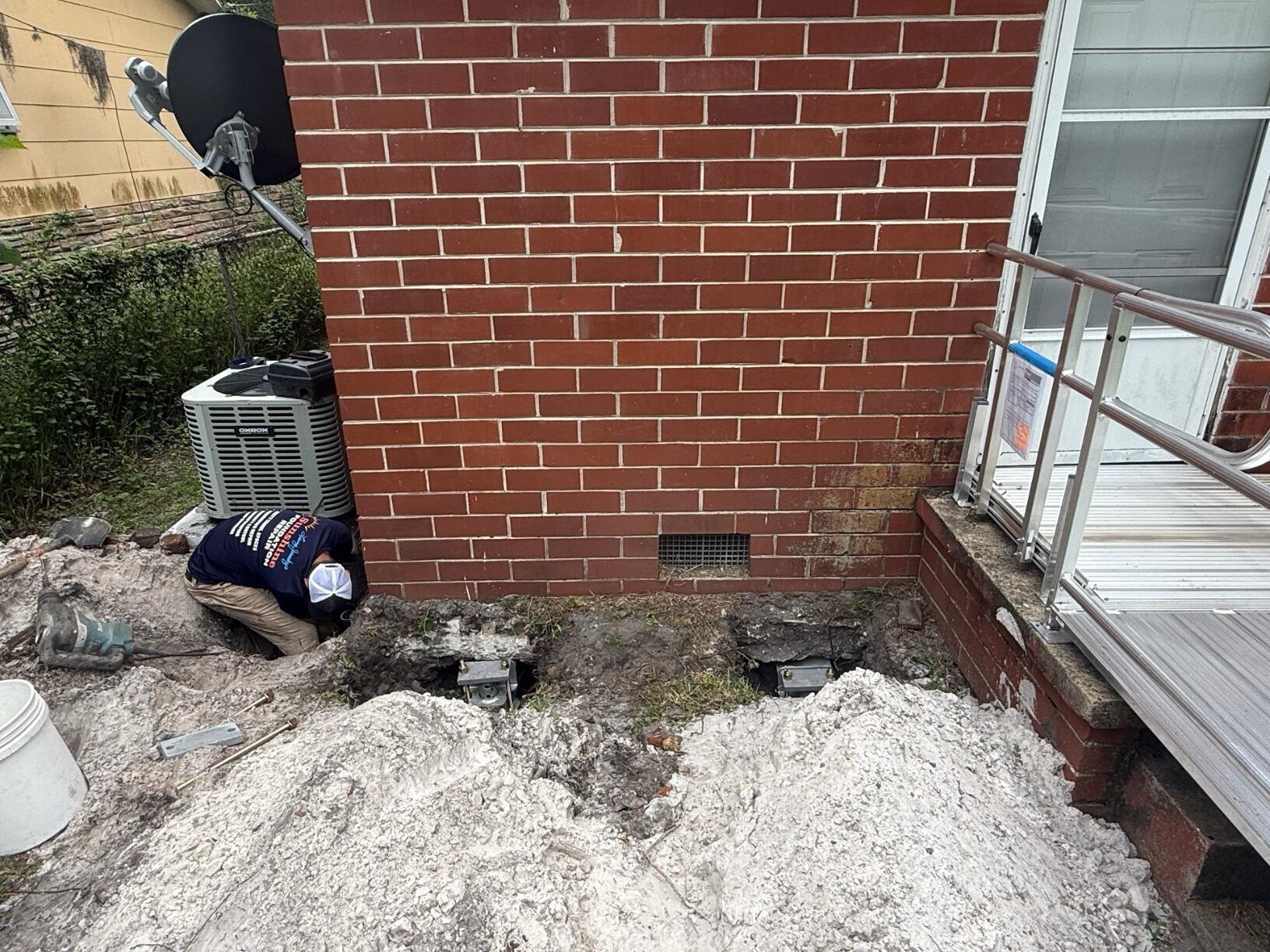 This Jacksonville Beach property was showing signs of foundation settlement, with cracks forming along the exterior wall and uneven areas near the structure. Our team installed a helical pier system to permanently stabilize the foundation and prevent further shifting caused by sandy coastal soil conditions. The piers were driven to load-bearing strata and securely bracketed to the home’s footing, restoring long-term stability. After installation, the area was neatly backfilled and the yard left looking clean and level.