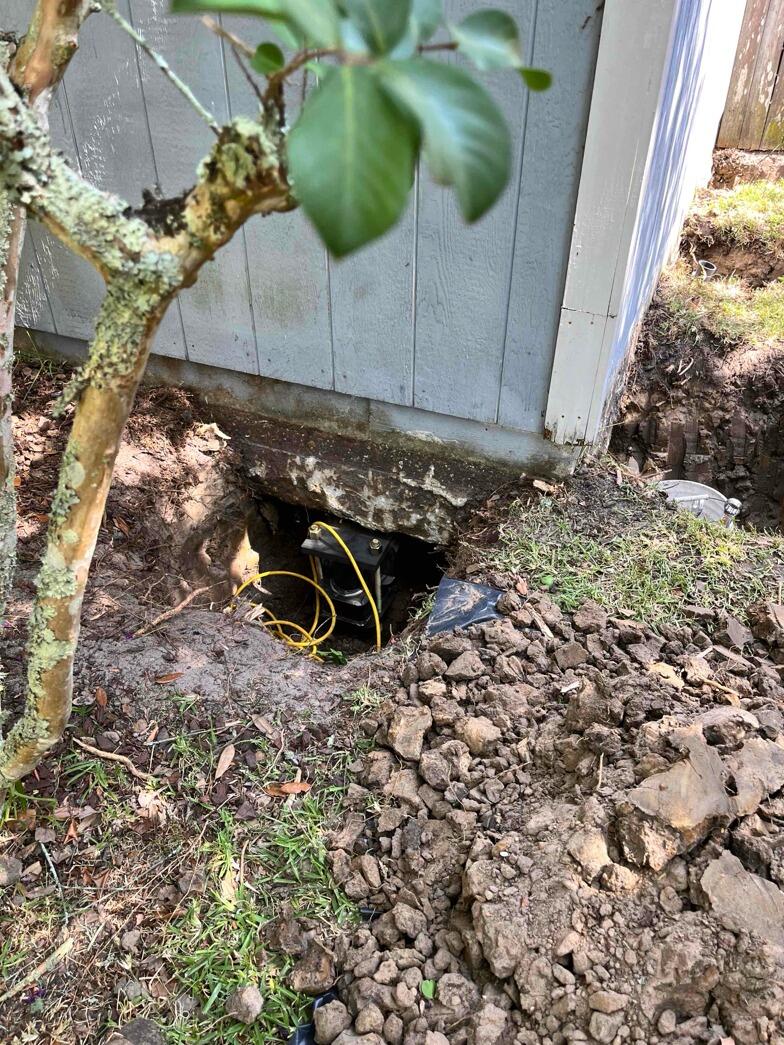 To stabilize and lift this homeowners sinking foundation, we installed our foundation pier system. The pier system works by transferring the weight of the structure from unstable soil to stable bedrock or load-bearing strata below. Steel piers are driven deep into the ground until they reach stable soil, then the foundation is lifted and stabilized, preventing further sinking or settling.