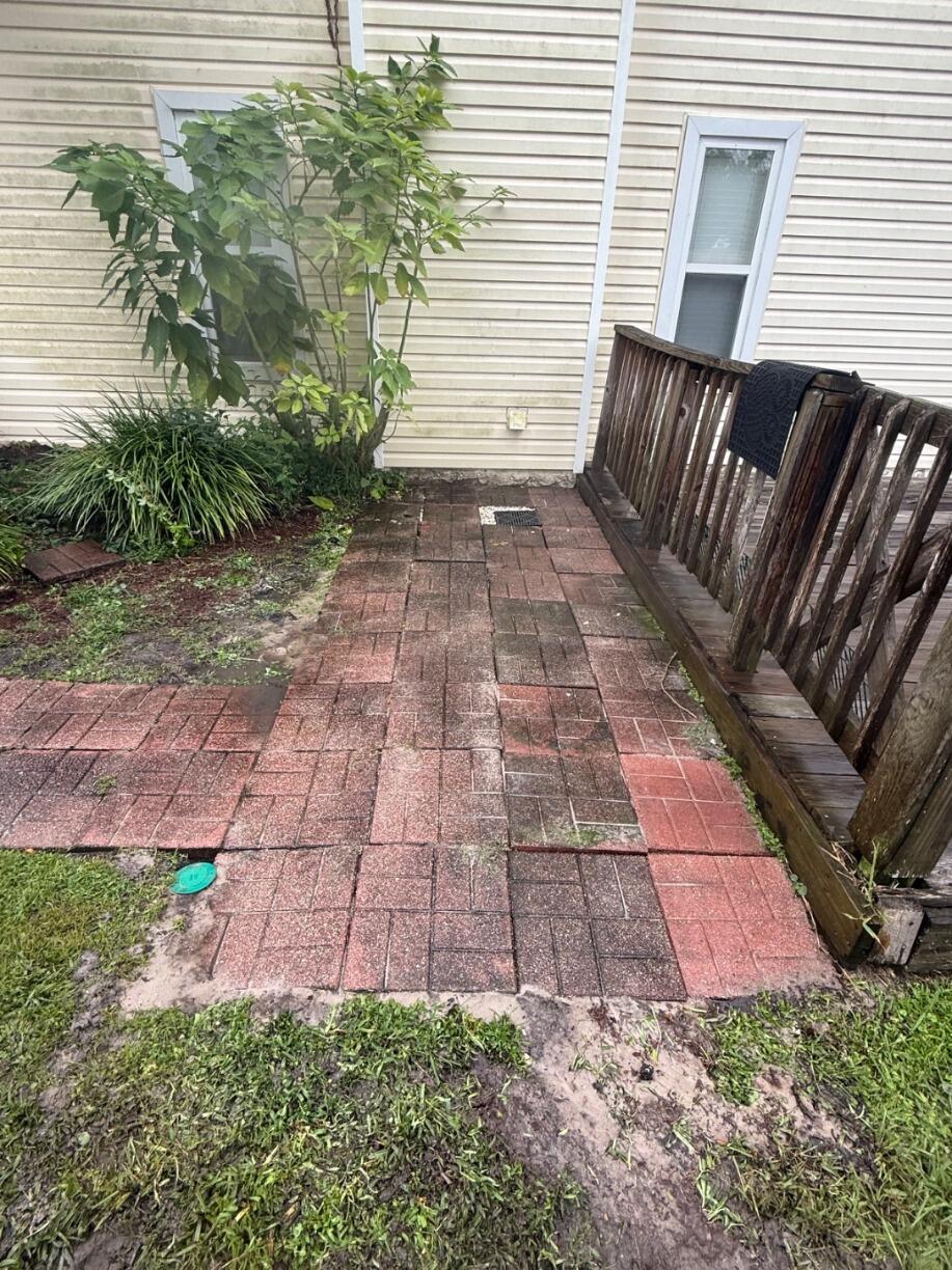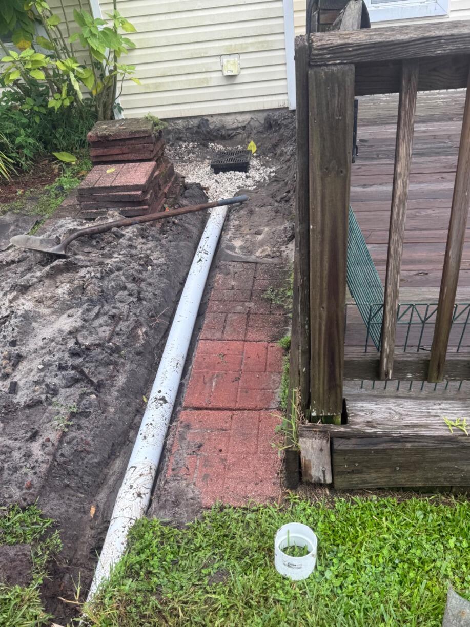This Orange Park, FL homeowner reached out because their yard was holding water, causing sinking areas in the lawn and problems around the deck. Standing water and erosion like this not only damage landscaping but can also threaten the foundation over time. Our team diagnosed the drainage issue, removed the affected pavers, and installed a buried drain line with a catch basin to redirect water away from the home. Once the system was in place, the area was backfilled with gravel, and the pavers were reset for a clean finish. With these solutions, the yard is now protected from pooling water, and the homeowner has peace of mind knowing the foundation and deck are safe from further damage.