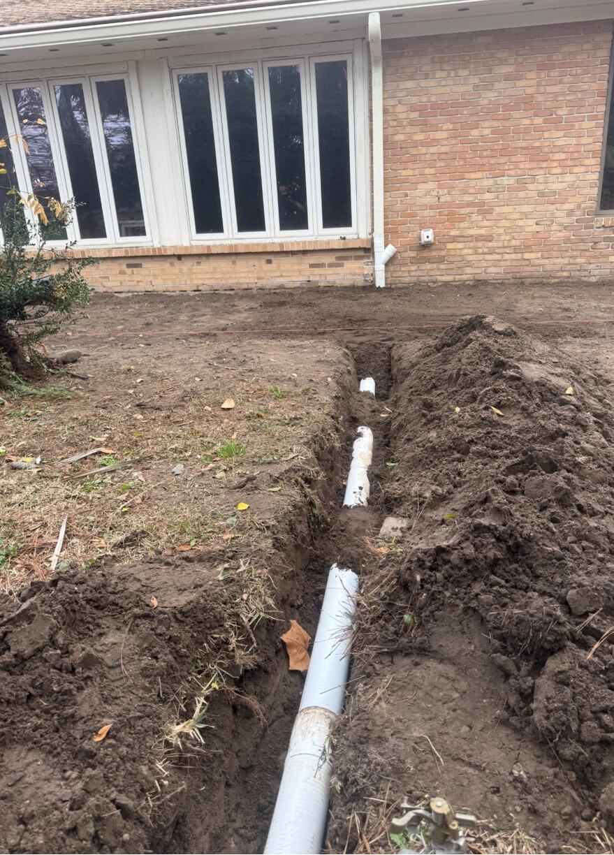 By excavating along the foundation and installing a properly sloped drain line, we’re preventing water from pooling near the structure and reducing the risk of foundation damage, soil erosion, and crawl space moisture issues.