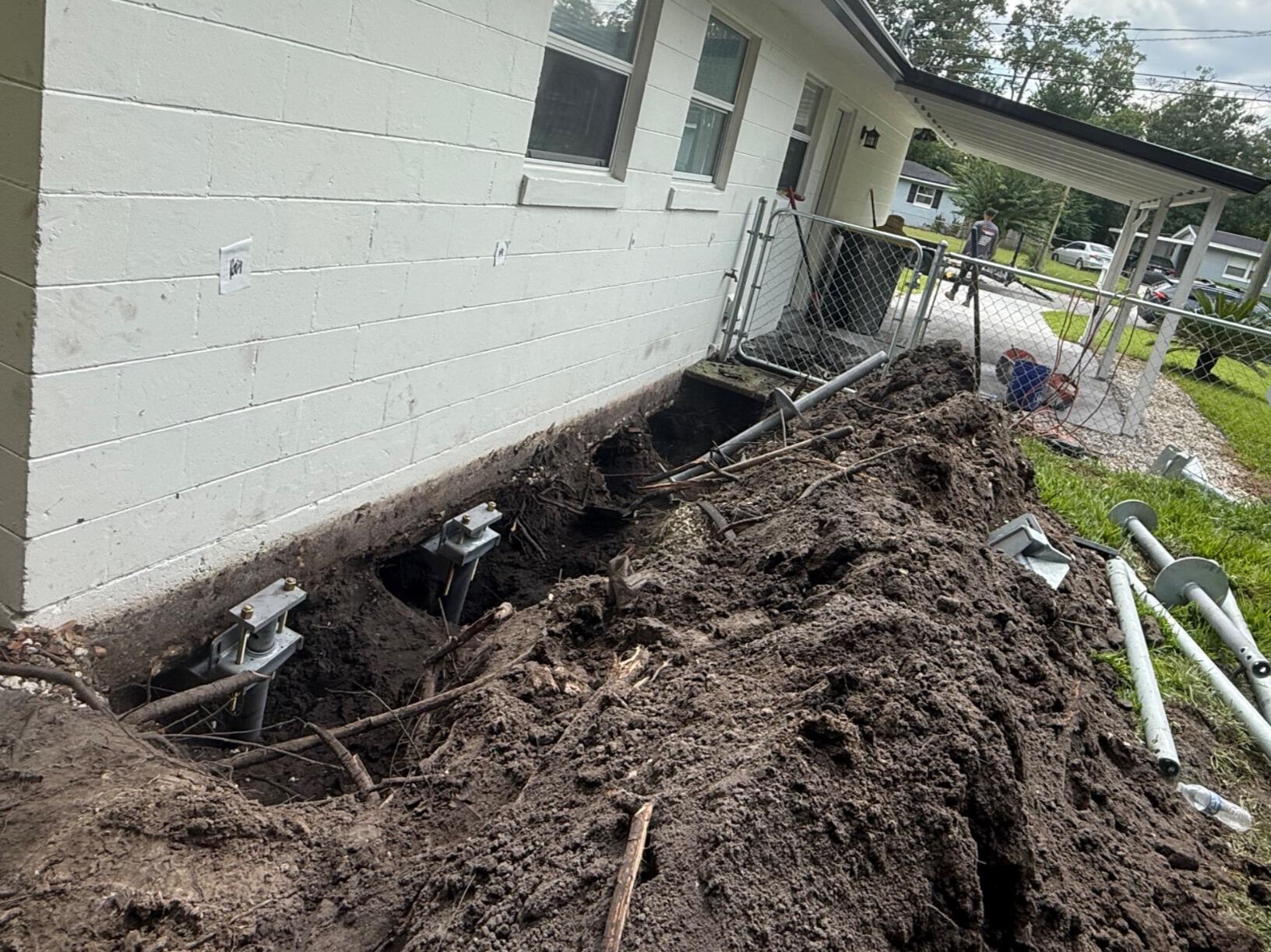 This Jacksonville, FL homeowner was dealing with foundation settlement that showed up as cracks in the block walls and sinking along the side of the home. To permanently stabilize the structure, our team installed a series of helical piers along the foundation wall. These steel piers are driven deep into stable soil, transferring the weight of the home to strong load-bearing strata. Once in place, they halt settlement and provide long-term support. With this solution, the home’s foundation is now secure, protecting both the structure and the homeowner’s peace of mind.