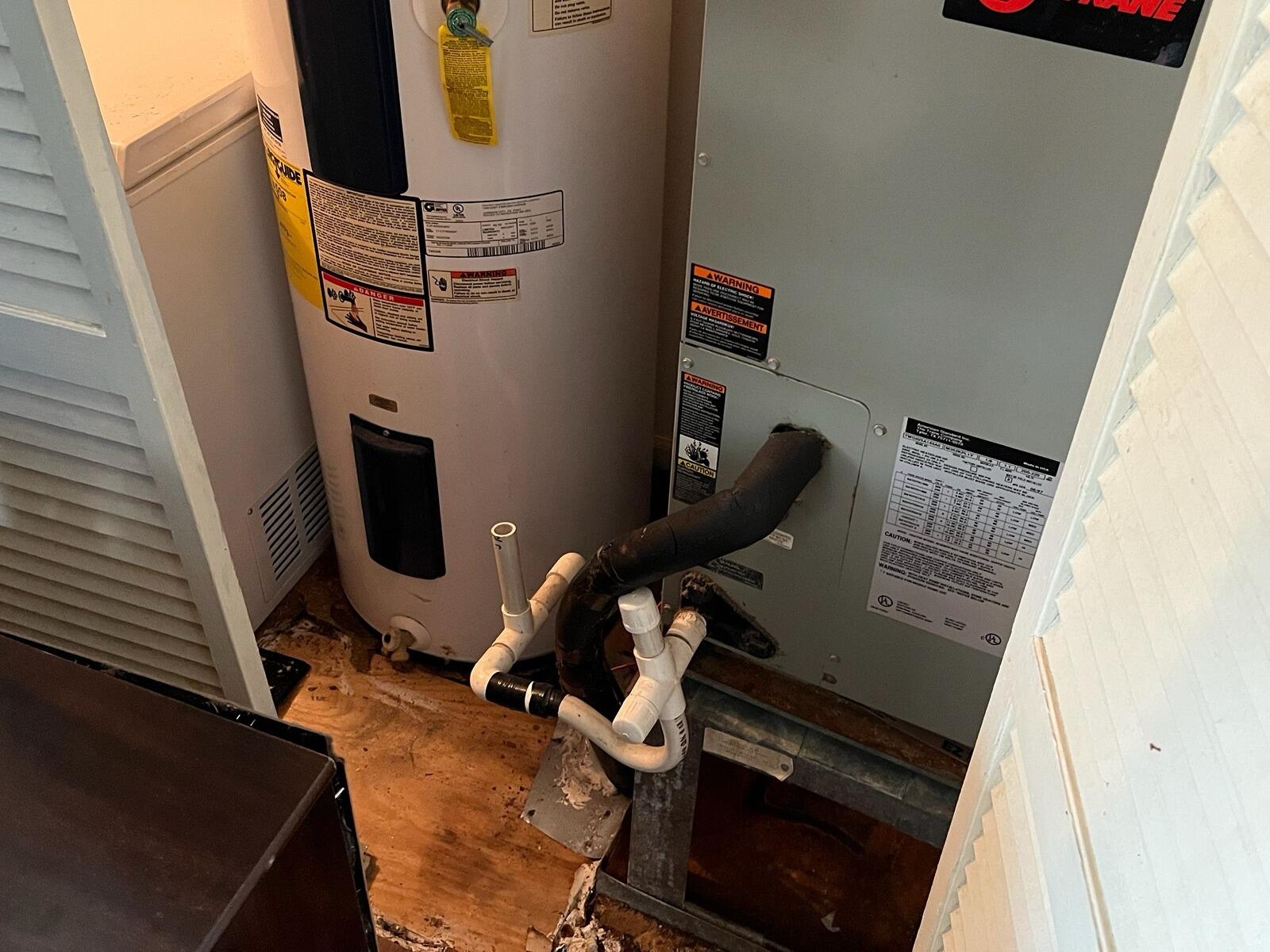 A homeowner called in with concerns of a soft sport in their subfloor under their water heater. After the inspection from our Design Specialist, it was determined that the subfloor would need replacing. Our expert crew came in and handled it no problem.