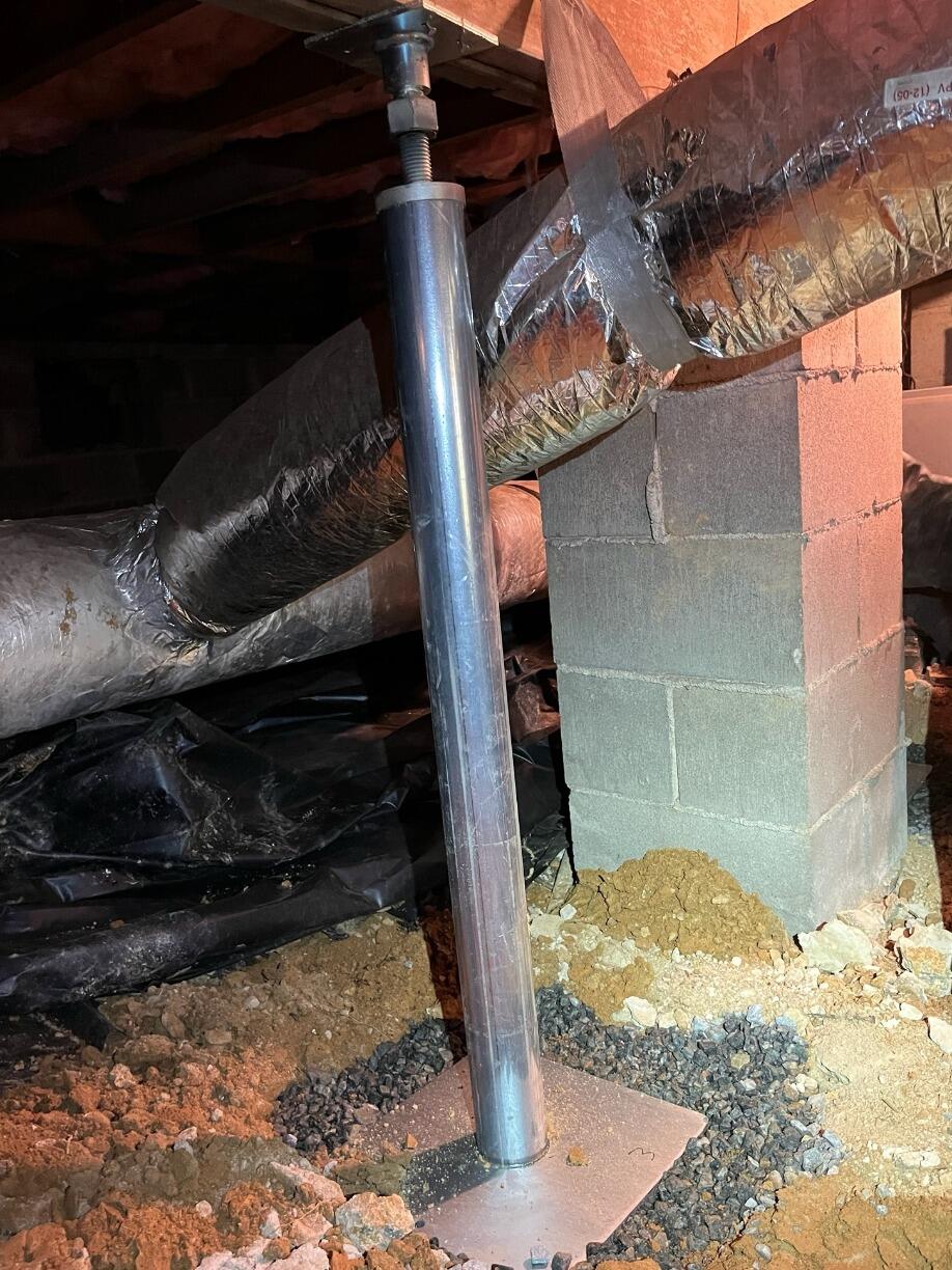 We installed our SmartJack Support System to lift, level and permanently stabilize this customers sagging floor above their crawl space.