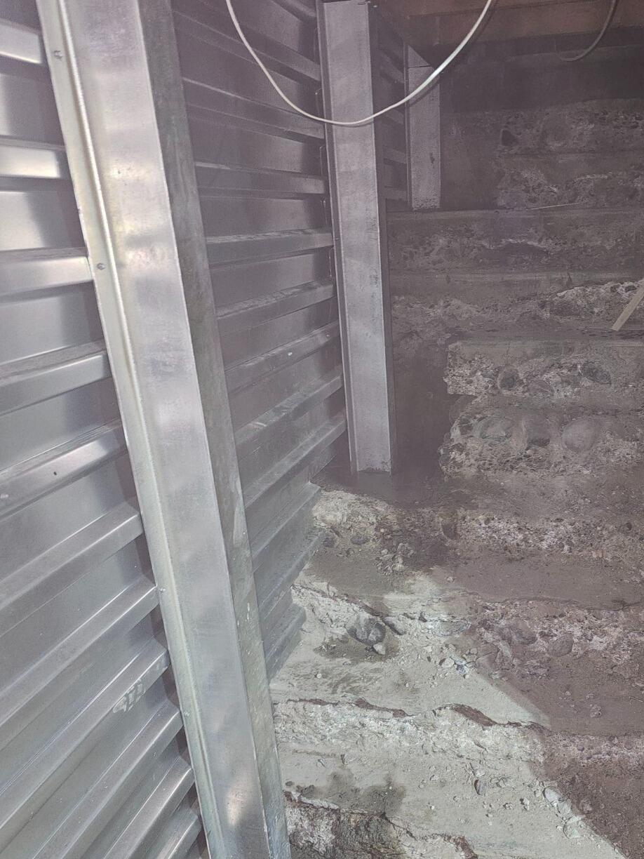 Any visible support posts for this failing foundation wall was withering away due to wood rot. Thus, the homeowner needed a permanent solution. Enter: The EverBrace Wall Restoration System. It can permanently stabilize even the most extreme failing foundation walls and protect against future damage, thanks to its powerful steel corrugated panels that are custom-fit to every wall and obstacle. It transfers the load from the failing wall onto a new support system, ensuring it'll remain strong for years to come. To protect your foundation, ask us for a FREE estimate for your home!