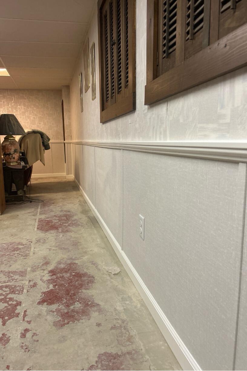 Foreman Sai and his crew installed ZenWall paneling along the basement walls to brighten the space and provide built-in insulation. To complete the transformation, they added Elite Plank Flooring in gray—giving the basement a clean, modern finish that's both durable and waterproof.