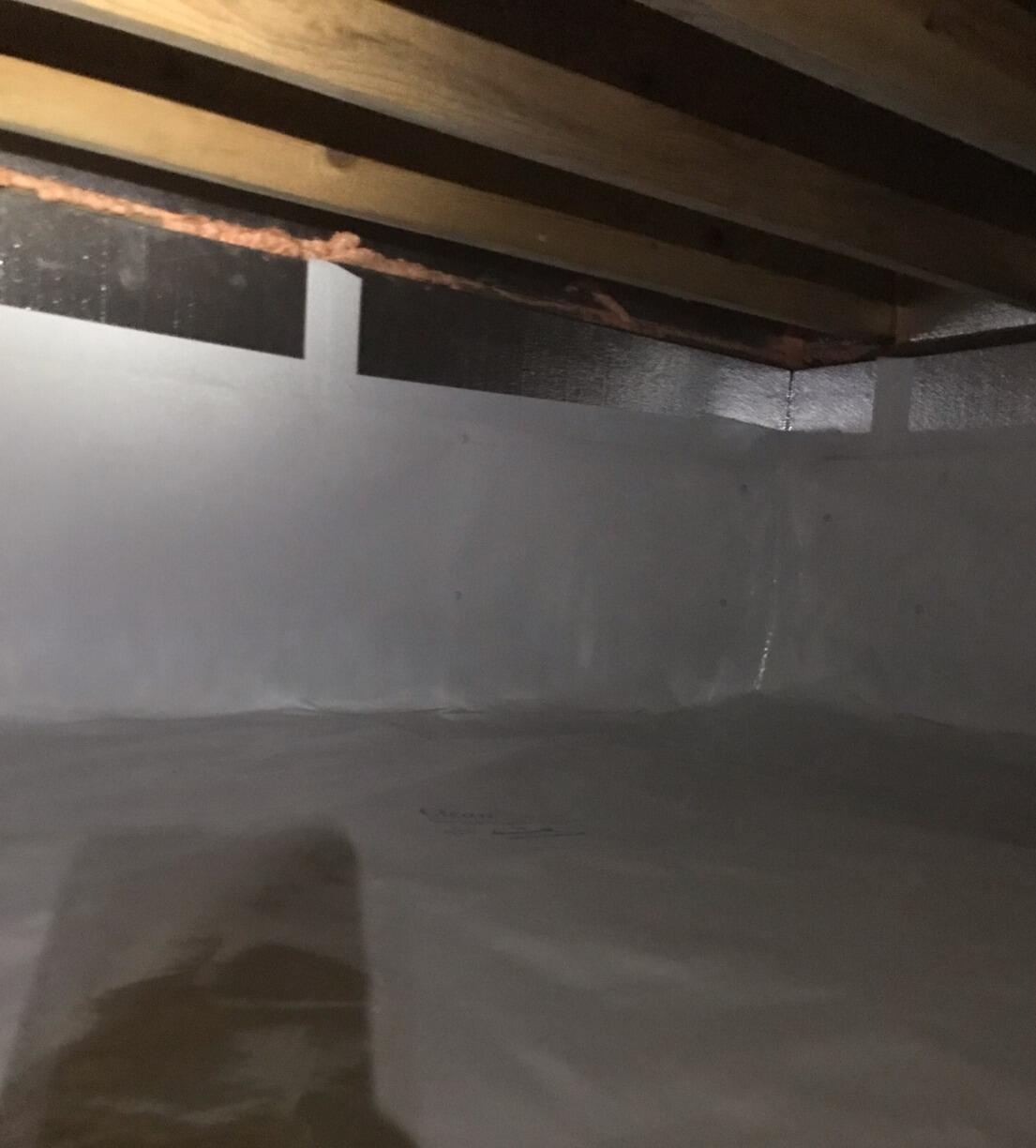 A homeowner in Wilkinson, Indiana was concerned about cold floors in the winter months due to a lack of insulation and a properly sealed crawlspace. Our Certified Inspector Devon met with the homeowner and discussed insulating and encapsulating the crawl space to control the environment in the entire home. Our Foreman Joe and his crew members Erick and Eliuc installed CleanSpace vapor barrier on the ground and walls, and SilverGlo thermal insulation.