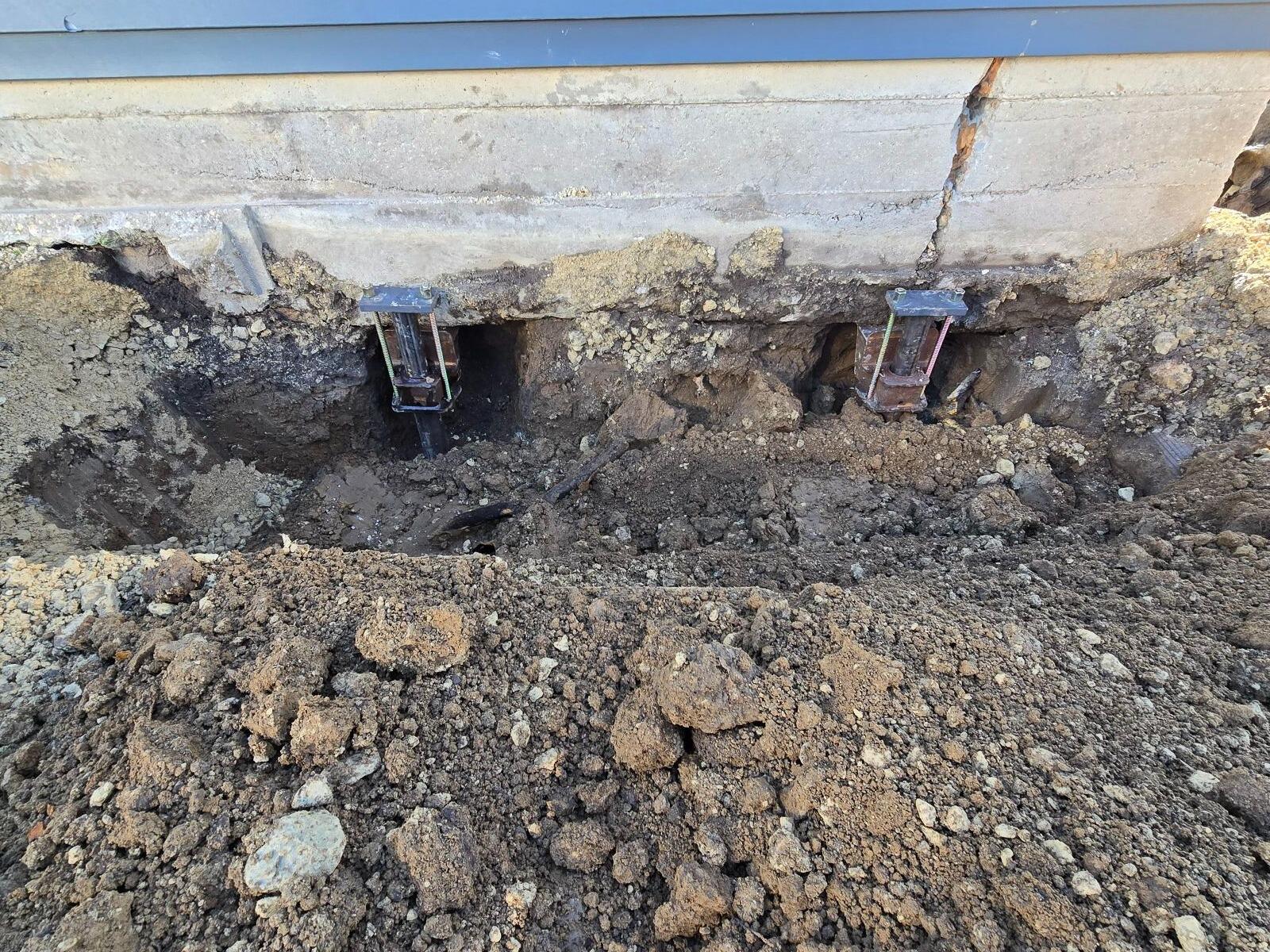 The Push Pier System can permanently stabilize a bowing wall. The system can even lift the foundation back to its original level. Steel tubes are hydraulically driven through steel foundation brackets into the ground. The weight is then transferred through the piers to the soil. The system can be installed year-round and can restore the wall right away bringing the homeowner peace of mind instantly!