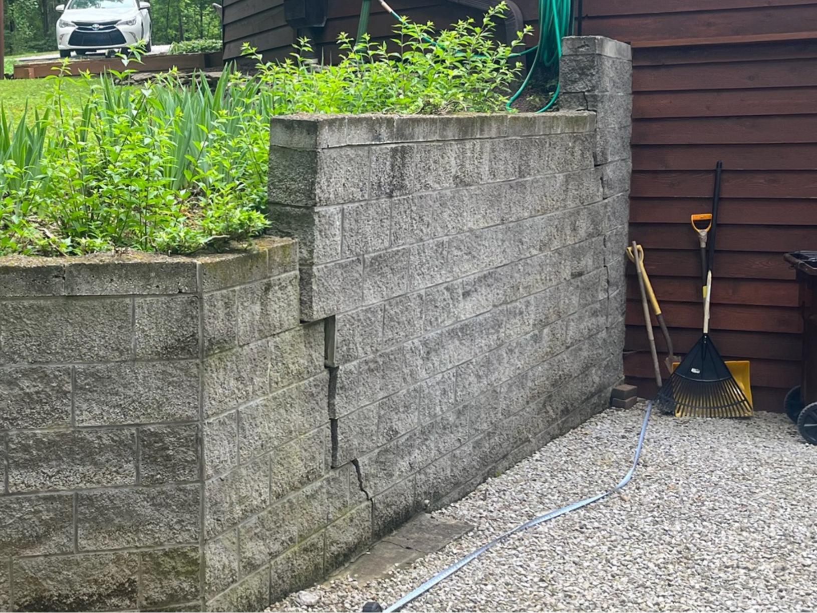 This Sadieville, KY homeowner had a retaining wall near their driveway that had started to lean outward from years of soil pressure. The movement was beginning to affect the stability of the driveway and raised concerns about long-term safety. Our crew installed two helical tiebacks and two wall anchors to pull the wall back toward its original position and lock it securely in place. What was once a visibly leaning wall is now straight, stable, and ready to hold strong for years to come.