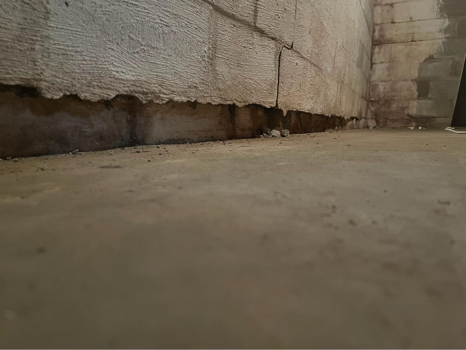 This photo set taken from a basement shows the transformation of a bowing wall repair project in Frankfort, KY. The before photo highlights the shearing symptom, which happens in late stage of wall failure, and is super dangerous. Shearing occurs when there is so much external pressure that the wall slowly starts to slide inwards, right over the floor slab. This wall was at a very high risk for complete structural failure. After we repaired the wall with a bracing system, we were able to push the wall back to a plum position. In fact, our crew was able to push the wall back 3 inches far. This repair process was very delicate, but our crew was able to handle the pressure. If you wish to read more about this project, we have a case study that you can read by clicking here.