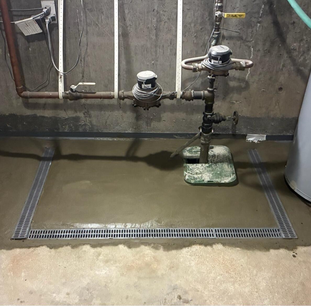 This homeowner in Milton, MA reached out to us about water that was seeping into their basement and pooling near some of their home's utilities. Our inspector, David, went out to the home and drew up a waterproofing solution for the basement. On installation day, our foreman, Damien, and his crew installed our WaterGuard drainage system around the floor's perimeter to collect groundwater. Near the utilities, they filled in the hole with fresh concrete and installed our TrenchDrain grated basement drain to also collect any surface water and further protect the utilities. Now the homeowner no longer has to worry about there home's utilities being impacted by water!