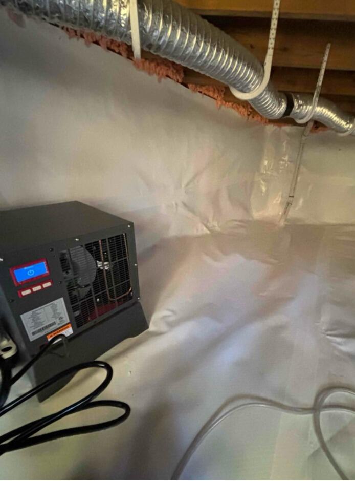 This homeowner in Cranston, RI reached out to us because their crawl space was having extreme moisture issues that were causing the fiberglass insulation to make a mess in the space. On installation day, our crew first removed the deteriorated fiberglass insulation, then they laid down drainage matting over the dirt floor of the crawl space to allow any water to flow under and out instead of pooling inside. They reinsulated the space with our SilverGlo wall insulation which regulates temperature and doesn't deteriorate over time. Then the crew fully encapsulated the crawl space with our CleanSpace vapor barrier to seal it off. They lastly installed our SaniDry Sedona dehumidifier to keep the moisture in the air under control. Now the homeowner no longer has to worry about excessive moisture or messy insulation in their crawl space!