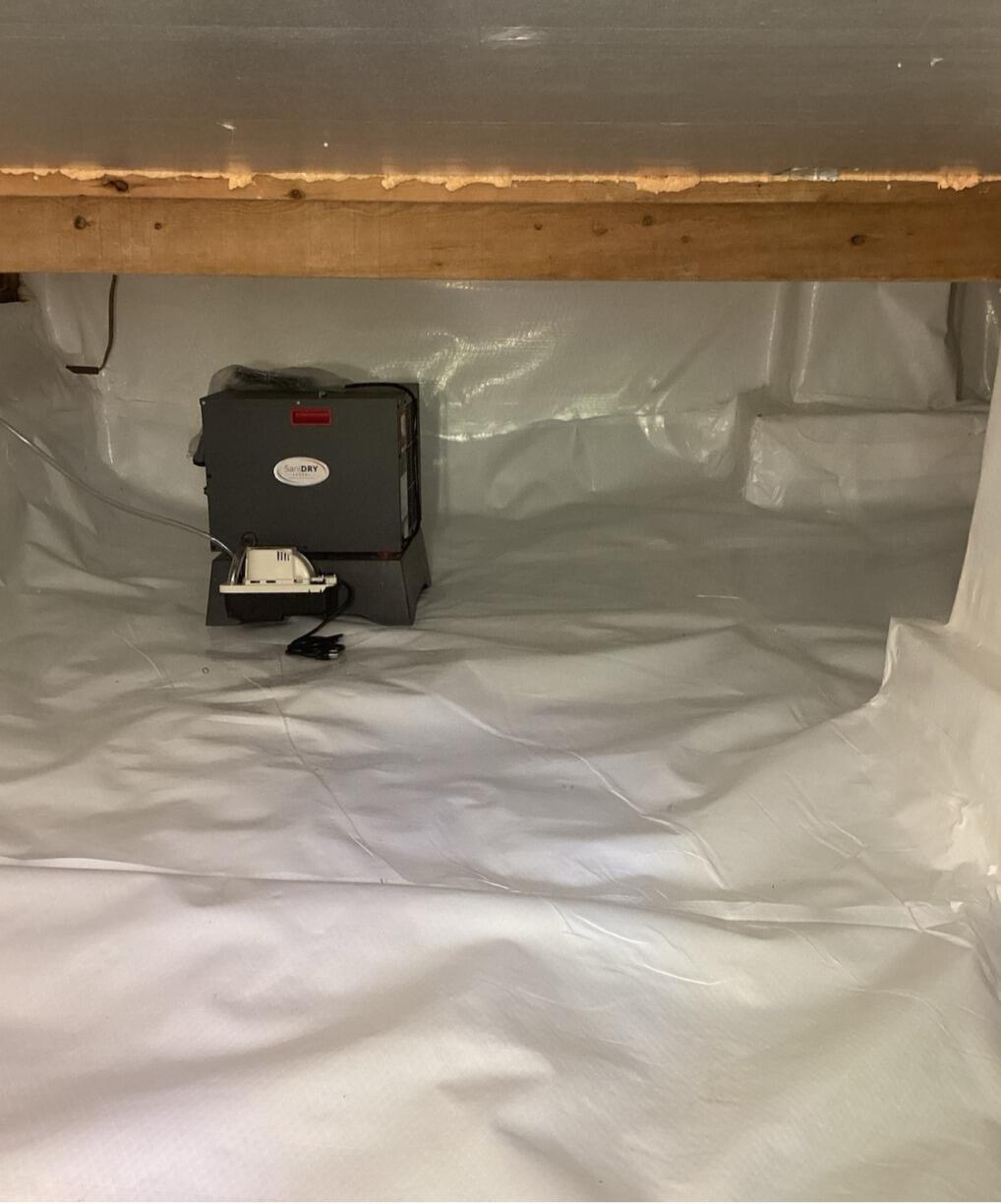 A homeowner in Seekonk, MA gave us a call because they were interested in having their crawl space encapsulated. On installation day, our crew started the project by removing all of the debris in the space, then they laid down our drainage matting over the dirt floor. On top of the drainage matting and along the walls of the crawl space, the crew installed our CleanSpace encapsulation system. Then they installed our SaniDry Sedona dehumidifier to keep humidity in the space low. Lastly, the crew installed our EverLast door over the crawl space entrance to further seal it off from the outdoor weather conditions. The homeowner is very happy with their improved crawl space!