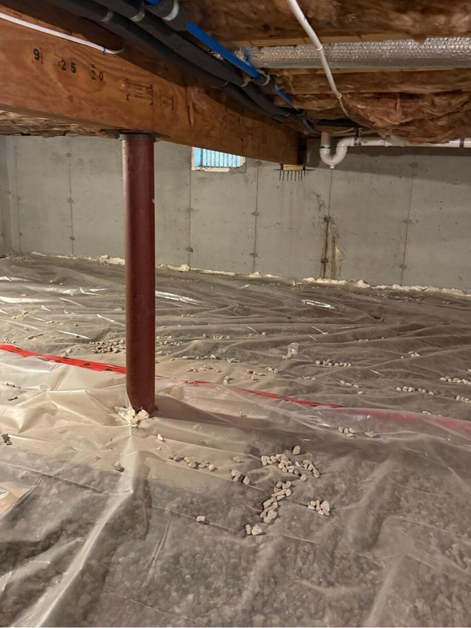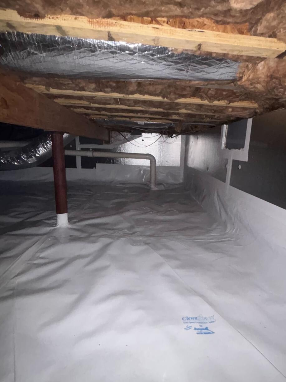This crawlspace in Bristol, RI had too much moisture in the air, causing a strange smell to haunt the noses of the homeowner living above. In addition, this moisture exposure can cause mold growth too! So we prevented any future moisture-related damages from happening by encapsulating this crawlspace with CleanSpace vapor barrier! Now, no more moisture will be able to get in!