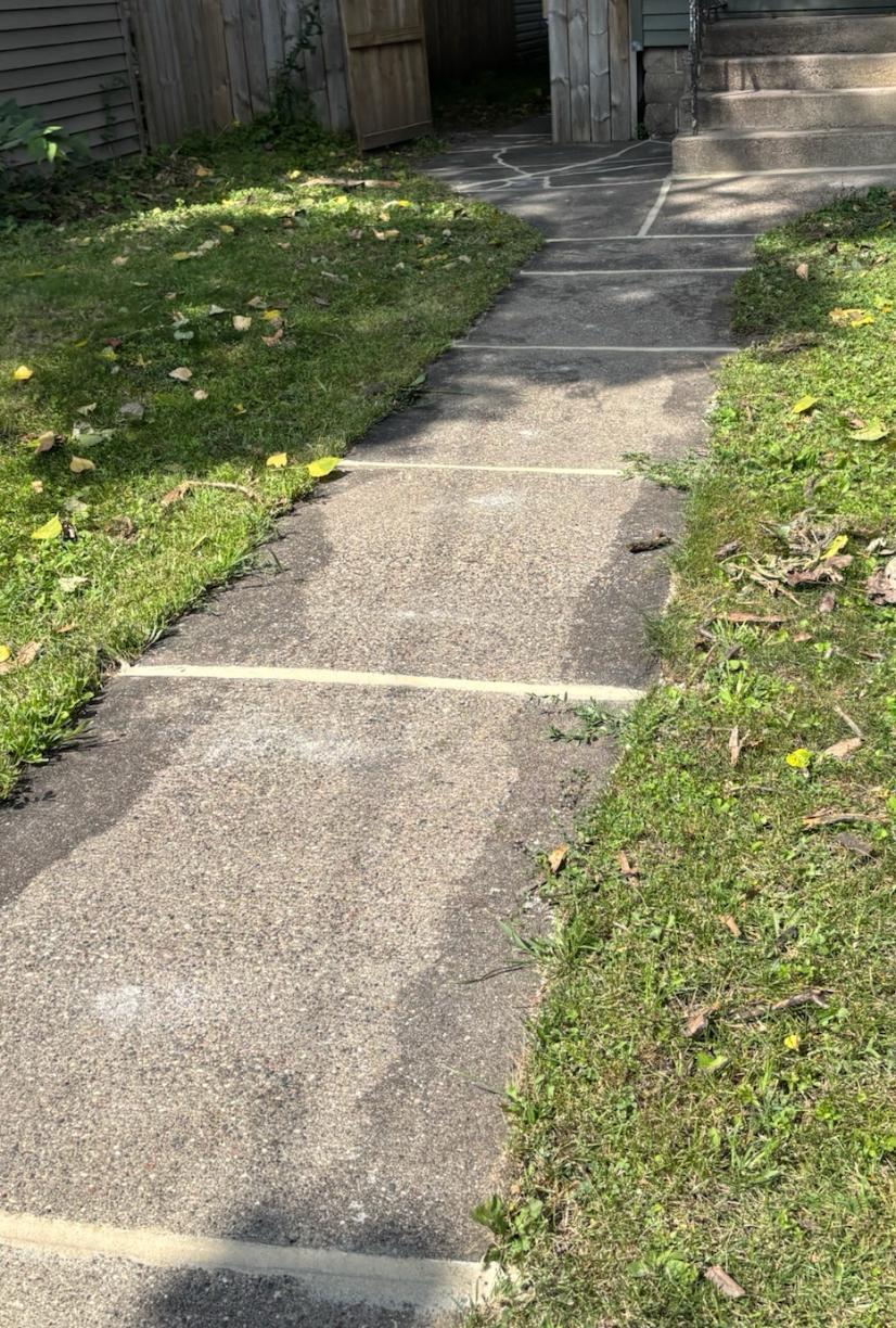 A homeowner in Minneapolis, MN, was growing frustrated with a sidewalk connecting her front and backyard. You see, sinking concrete on the sidewalk was making it hard for her to lug wheeled objects from the front to the back, or vice versa. She decided to search for a company that could help with the issue. Once she found our website, she decided to call us, and set up her FREE estimate. A few weeks later, our Design Specialist, Adam V, headed out to the home.