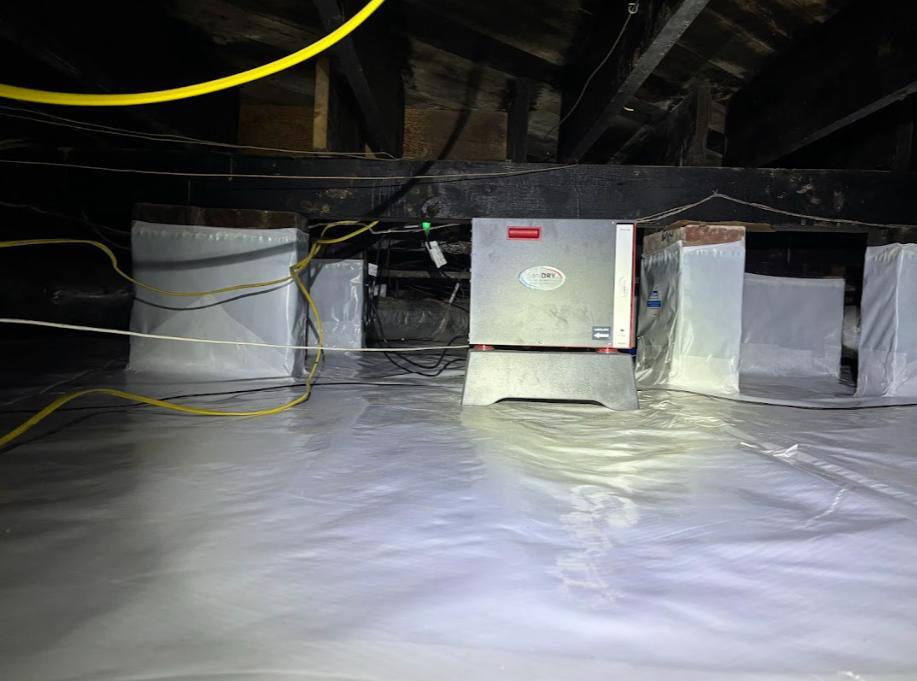 Our CleanSpace Liner is a vital part of our overall encapsulation system and really goes above and beyond your standard vapor barrier. This much more durable liner isn't just thrown on top of the crawl space floor, but is wrapped around all of the walls and supports of the crawl space as well. In combination with our drainage matting, ground and wall moisture seepage can be blocked out and collected. This encapsulation was designed by one of our specialists, Scottie, and installed by our foreman, David, and his talented crew!
