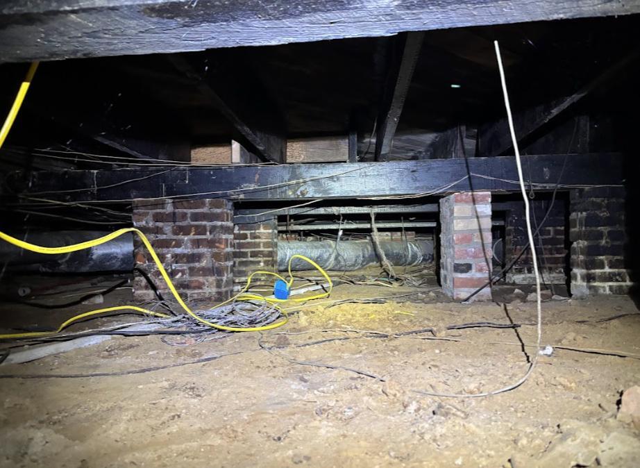 These two images were taken inside the same exact crawlspace and show the drastic difference between our CleanSpace Liner and the vapor barrier that was previously in the crawlspace.