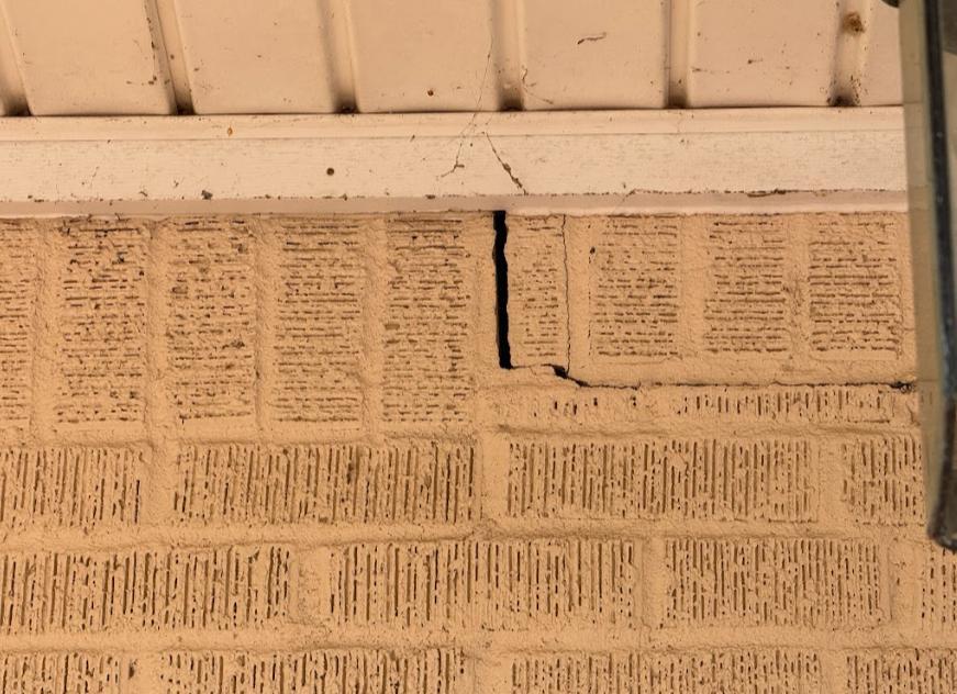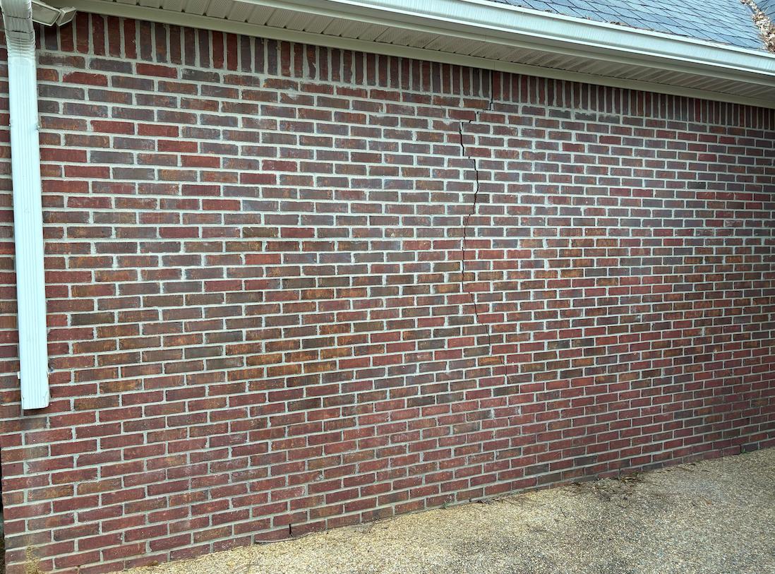 Here is an example of the result our foundation stabilization system had on this home in Brandon. Our goal is to stabilize homes and prevent any further settlement, but as you can see here, sometimes we can achieve some significant lift! Our precise and talented crew lifted this home the perfect amount: enough to show improvement, but not too far that the home is put at risk of other issues. The large crack on the side of this home is looking a lot better and has no chance of spreading.