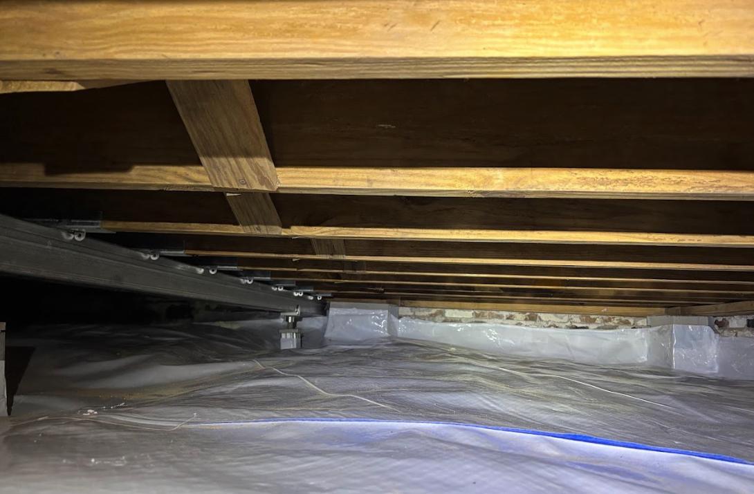 Wet, Sagging Crawlspace gets Stabilized and Encapsulated in Columbus, MS