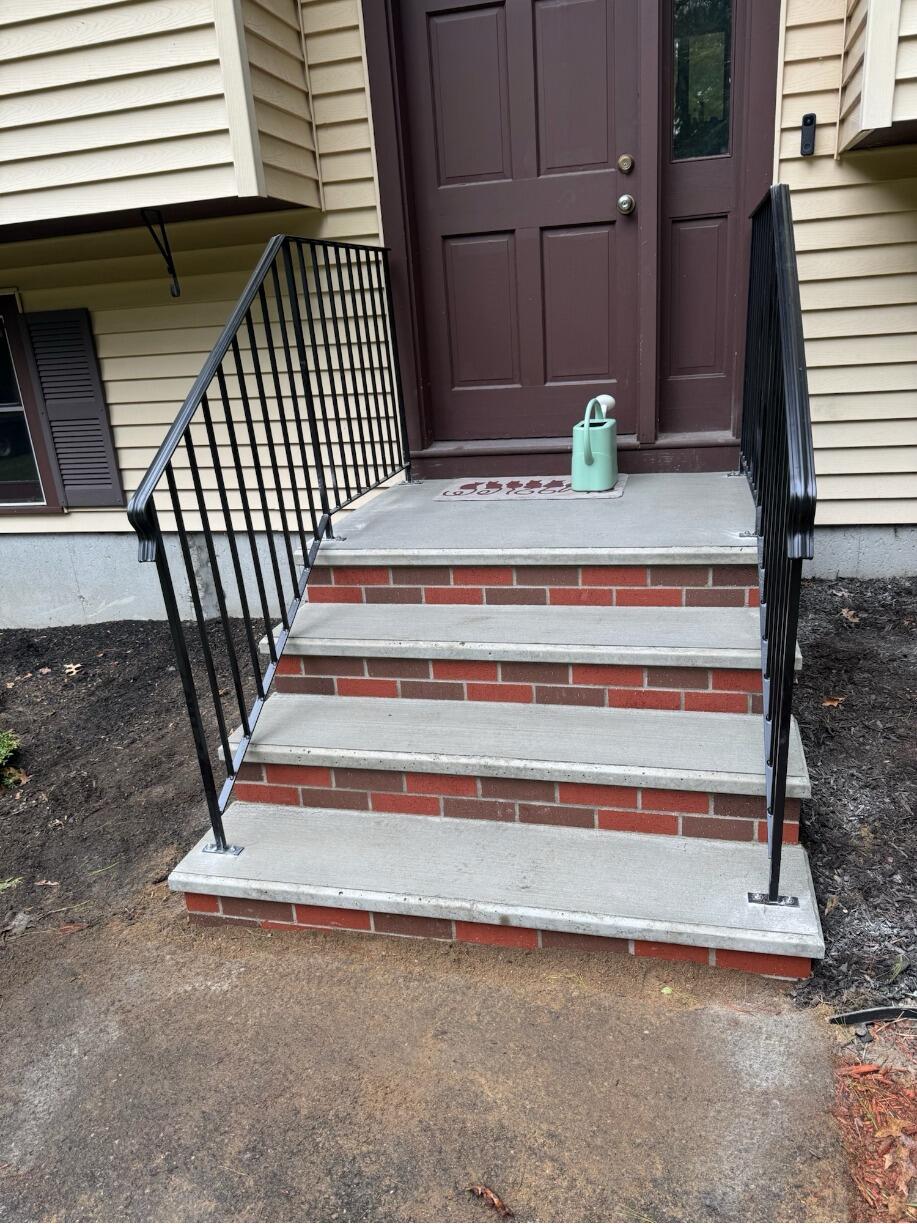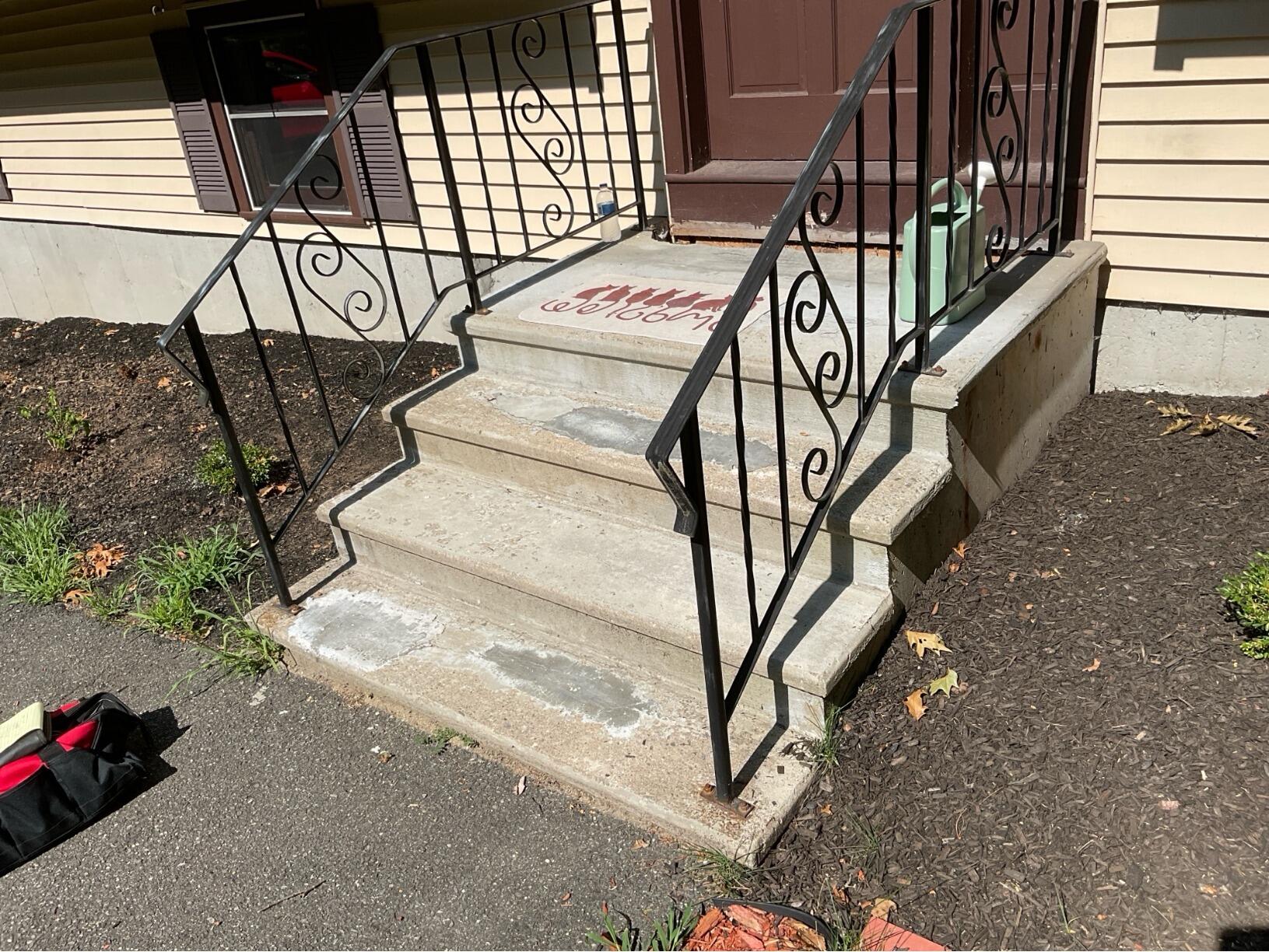 In Derry, NH, our team at Erickson Foundation Solutions encountered a homeowner facing issues with sinking precast stairs. Notice in the "before" photo how the stairs had settled, posing both aesthetic and safety concerns. To restore stability and enhance curb appeal, we installed helical piers. These engineered steel piers are driven deep into competent soils, effectively redistributing the weight and providing permanent support. The "after" image showcases the new, more appealing precast stairs, secure and stable. Our expert solution ensures peace of mind for this homeowner.