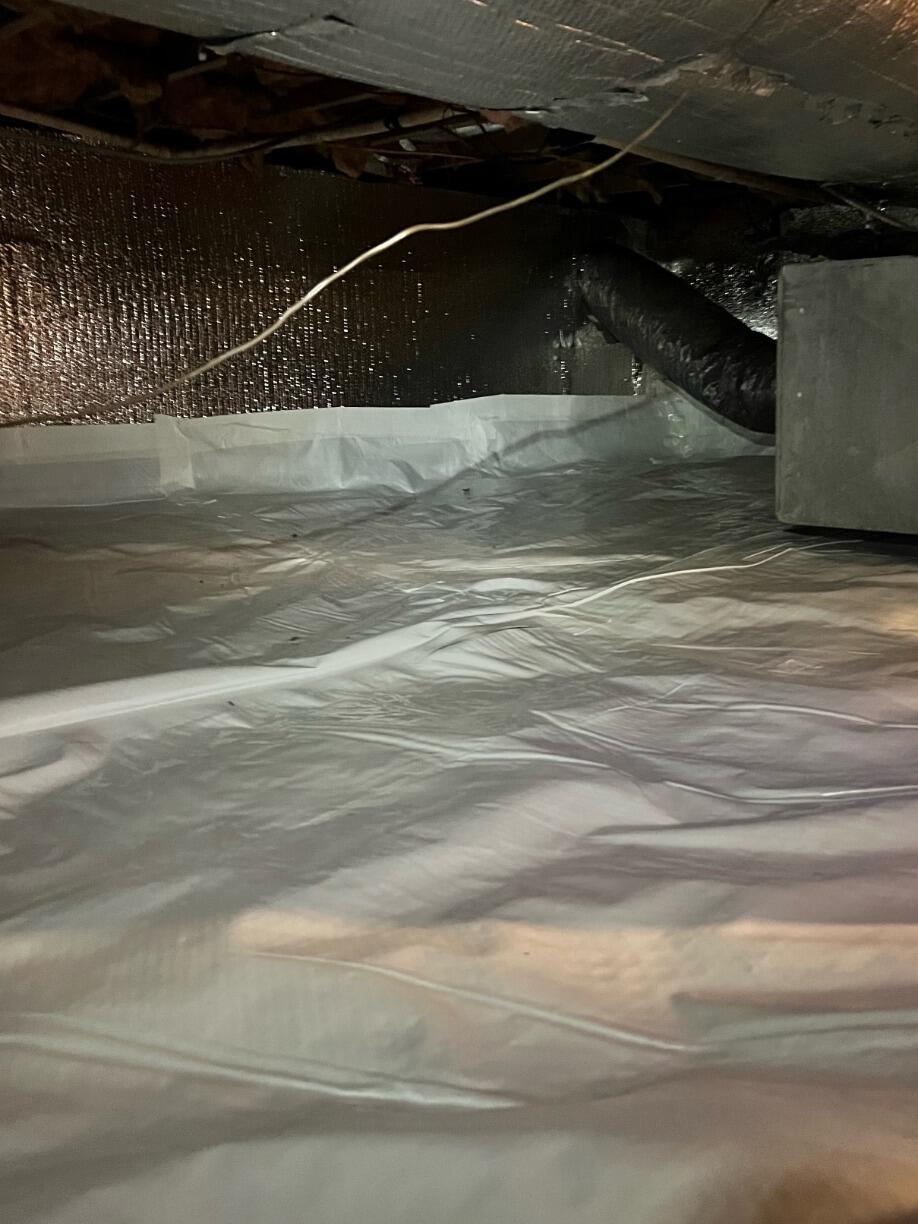 SilverGlo insulation was installed along the crawl space walls to reflect heat, improve energy efficiency, and help regulate temperature. Then, CleanSpace sealed the crawl space from ground moisture and outside air, creating a clean, dry barrier beneath the home. Together, these systems dramatically reduced humidity levels and protected the home from moisture-related damage.