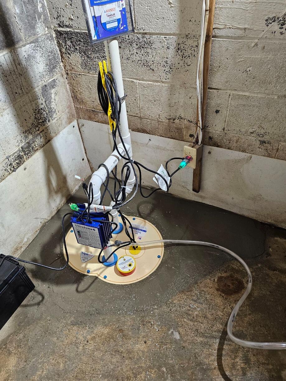 After conducting a thorough inspection, our team accurately identified the source of the water intrusion and developed a fully customized waterproofing plan to resolve it. The solution included the installation of our patented TripleSafe Sump Pump System, designed to provide reliable protection even during heavy water events, along with our high-performance SaniDry Dehumidifier to control excess humidity and improve air quality.