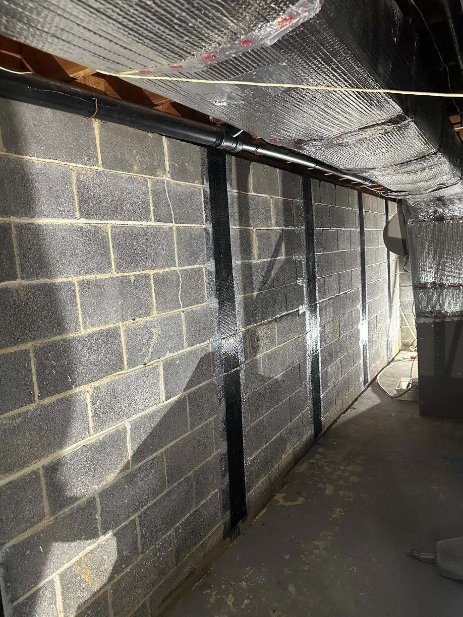 A block foundation in East Brunswick, NJ had begun to bow slightly from soil pressure. Our crew installed CarbonArmor straps: powerful carbon fiber reinforcements that stop wall movement and strengthen the structure. The system provides lasting protection with a clean, low-profile finish.