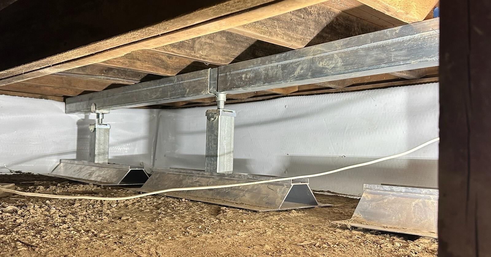 CleanSpace was installed on the walls to act as a barrier for moisture and odors, preventing it from penetrating through. SmartJacks were installed to support any falling beams, with each SmartJack having the ability to be adjusted to the height of the crawl space for a secure fit.