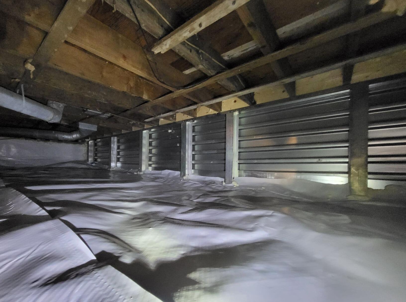 Beams in this Galway crawlspace were being held up with stone, as the wood got weaker and weaker due to a humid area. Our team installed SmartJacks to support the beams, as well as a Sedona SaniDry to keep the space free of humidity/prevent mold growth.