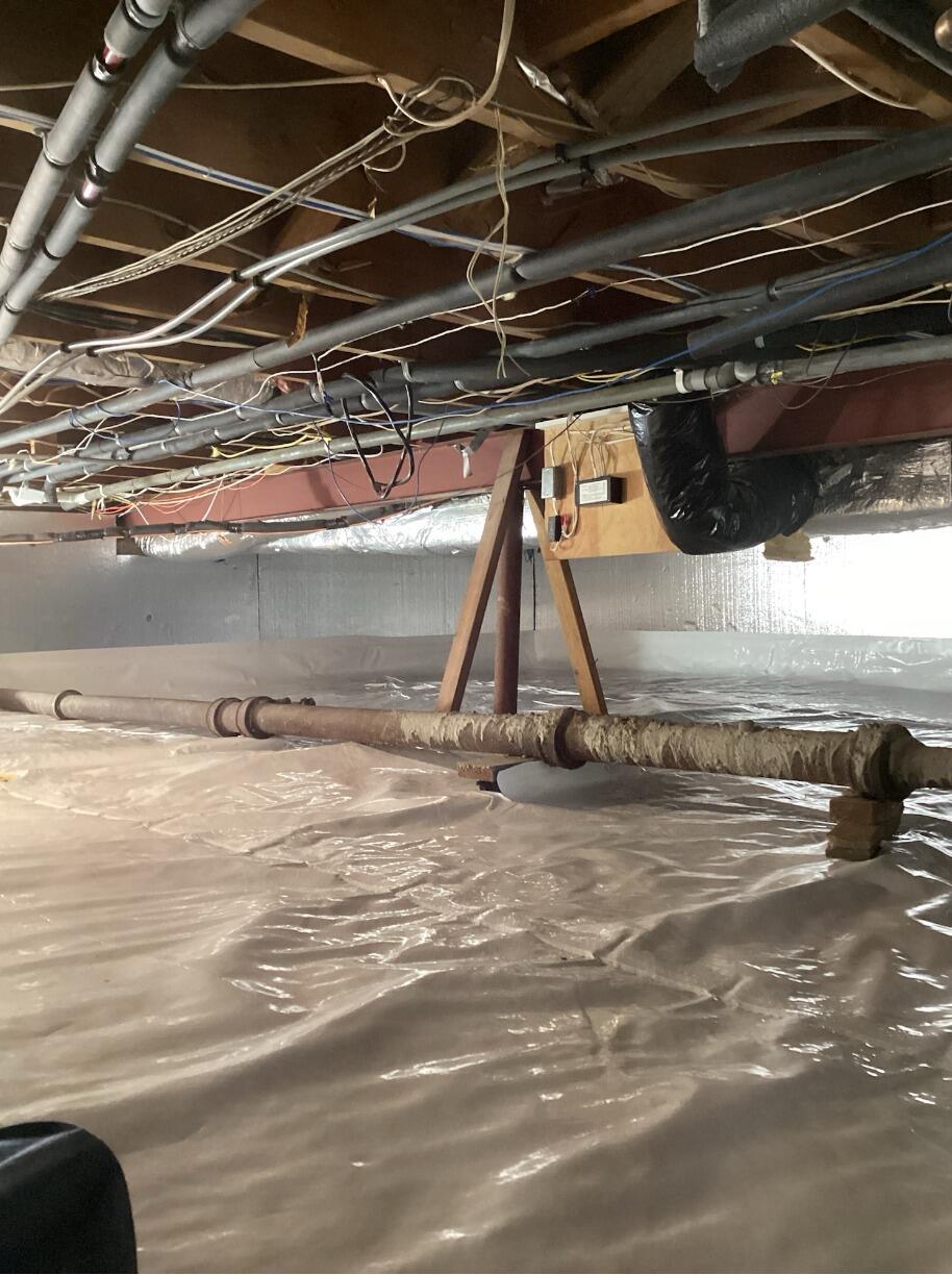This homeowner was experiencing an unusually humid first level. Our system design specialist diagnosed that this was from an unencapsulated crawl space. Their entire crawl space was wrapped in CleanSpace including the piers. This was done to prevent moisture from coming into the crawl space and into the living area above.
