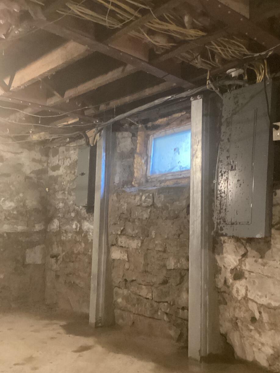 Leslie C. from Oakfield, NY, faced a large vertical crack in her basement wall. To stabilize the wall and prevent further damage, steel I-beams were installed. These beams provide long-lasting support by bracing the wall and halting any additional movement, restoring structural integrity to her home.