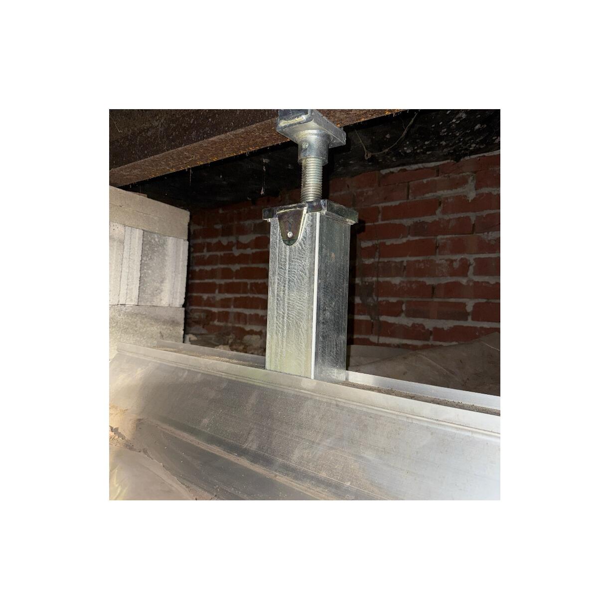 Before our team installed SmartJack support posts, the customer’s crawl space had significant foundation moisture issues, leading to wood rot and sagging floors. SmartJack support posts are steel support systems designed to stabilize and lift sagging floors by addressing foundation issues. After our installation, the SmartJacks provided durable, adjustable support, lifting the floors back to their proper level and preventing further structural damage caused by moisture and wood rot.