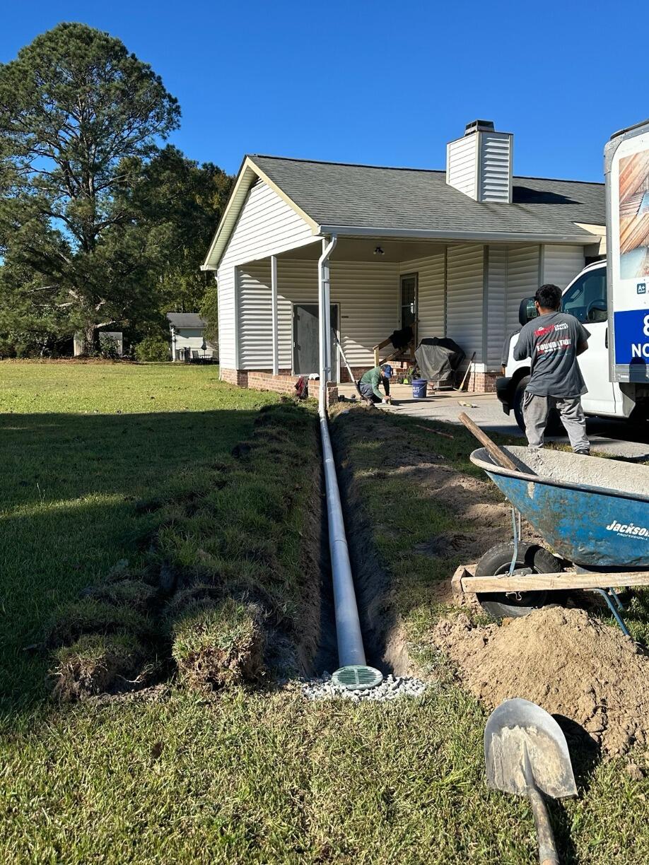 A homeowner in Pikeville, NC, reached out to our office seeking help with outdoor waterproofing. Their property was struggling with water pooling around the foundation, causing potential damage. We installed a French drain around the exterior of their home, which collects and redirects water away from the foundation. To complete the system, we added a discharge line that carried the water far from the home, ending with a LawnScape outlet for proper drainage. This solution effectively resolved the water issues, protecting the home and ensuring a drier, safer property.