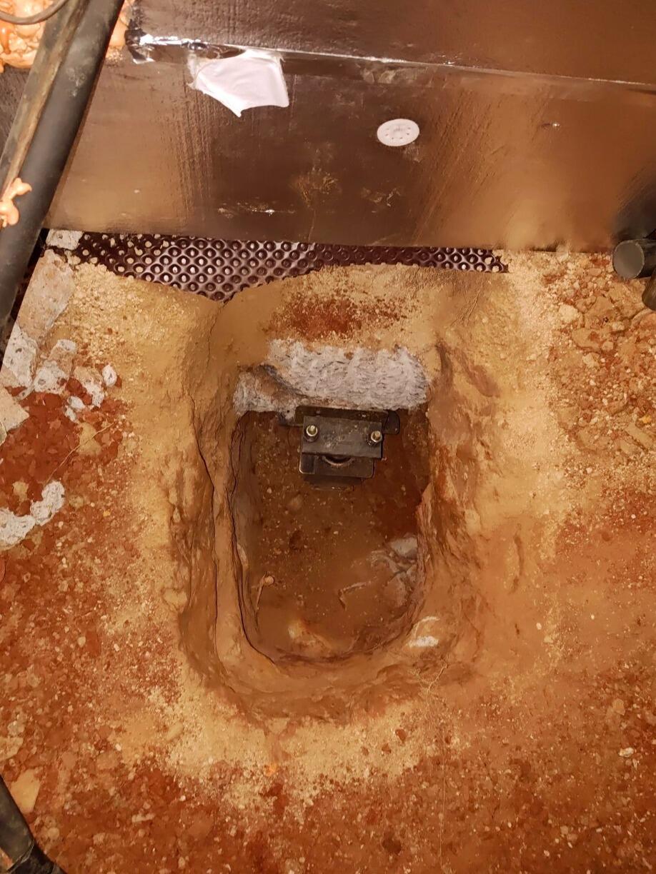 To restore this homes settling foundation, our team installed our Foundation Helical Pier System. The piers are driven deep into the ground and attached to the footing of the home. Once lift and stabilization is achieved, the pier location is filled with soil.