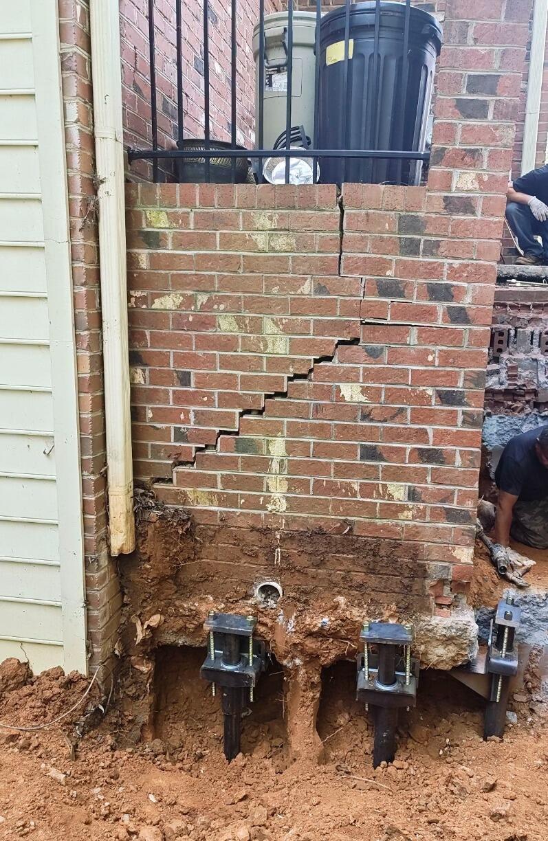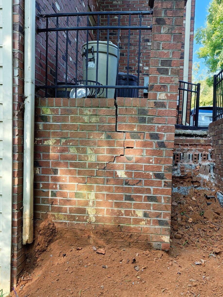 At this Advance, NC home, the retaining wall along the stairwell from the driveway to the backyard was starting to give way, creating serious safety concerns. Our team carefully demolished the failing brick staircase to access the area and installed 7 helical piers to stabilize and secure the wall. This solution provided lasting correction and restored structural support to the stairwell and driveway. The customer was thrilled with the results and the peace of mind that their home is now protected.