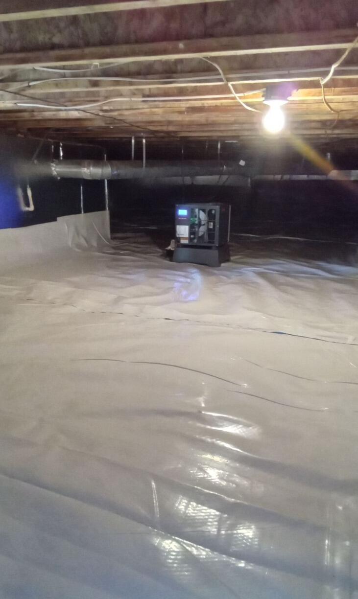 To prevent these issues, our team installed a durable crawl space barrier system along with a high-performance dehumidifier. The barrier seals the crawl space from outside air and ground moisture, while the dehumidifier maintains dry, healthy conditions year-round. Together, these solutions protect the home’s foundation, improve air quality, and provide long-lasting peace of mind for the homeowners.