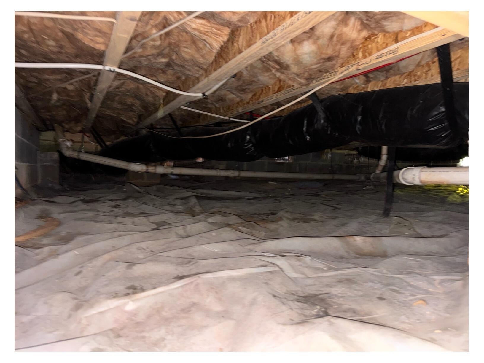 To restore a healthy environment, our team installed a SaniDry Sedona dehumidifier, the most efficient crawl space dehumidifier on the market. Combined with a durable CleanSpace vapor barrier, this system keeps humidity levels below 55%, preventing mold, wood rot, and musty odors. The “after” photo shows a fully sealed, clean crawl space environment now dry, energy-efficient, and protected for long-term structural health.