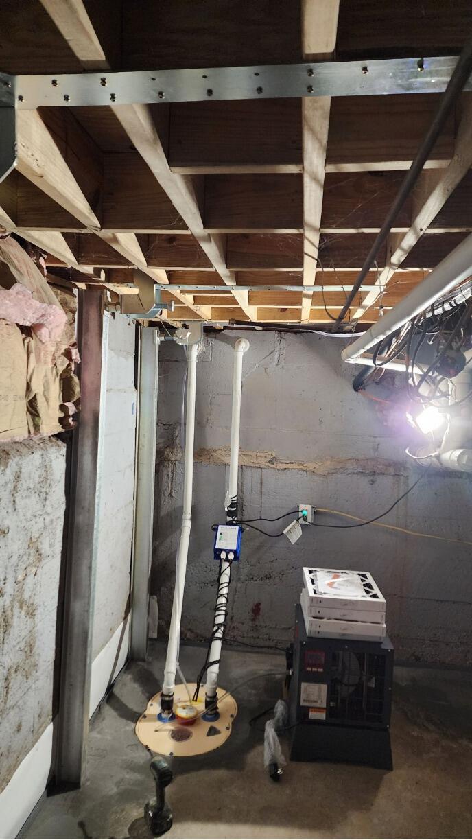 To fix the problem, we started by installing a full interior waterproofing system: WaterGuard subfloor drains along the perimeter, and a TripleSafe sump pump to keep water out for good. To address the structural issues, we stabilized the bowed walls using our steel PowerBrace system, locking them into place with long-term support. Finally, we finished the walls with BriteWall panels — not just for a cleaner look, but to help channel any future wall moisture directly into the drainage system.