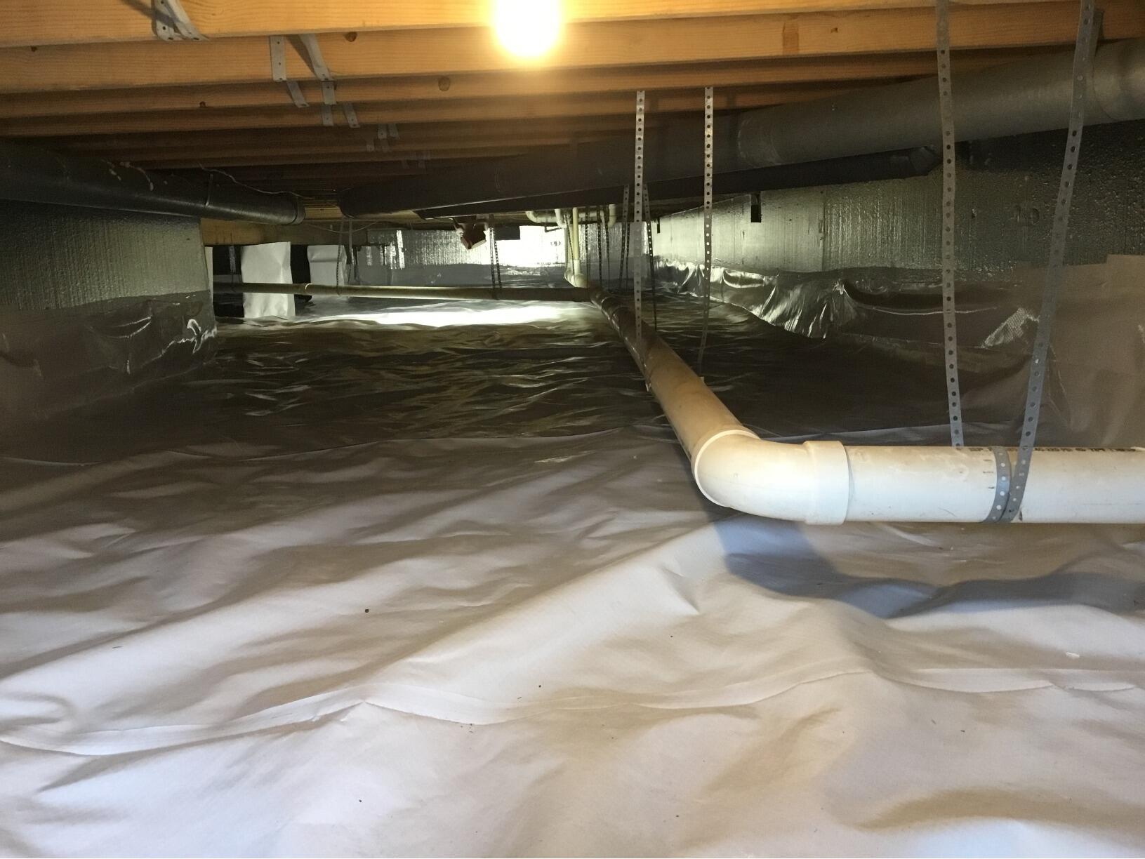 After reading about the many benefits—including reduced humidity, lower energy bills, added storage space, and protection from pests—they reached out to schedule an inspection. Once on site, our team cleaned out the crawl space, sealed off all outside air vents, and installed a heavy-duty vapor barrier along the floor and walls. We also added a dehumidifier to help maintain a dry, stable environment year-round.
