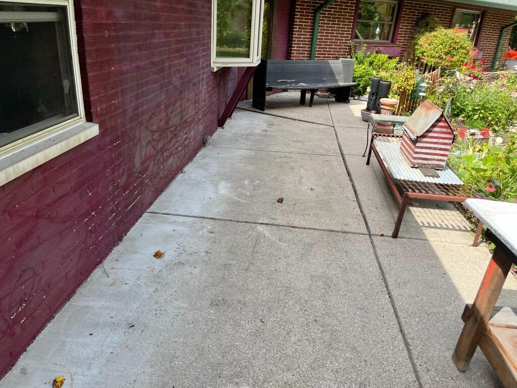 In Middletown, OH, these homeowners had a large tripping hazard on their back patio where two slabs had settled unevenly. The problem was so severe that they kept a bench over the back door just to cover it up. Our team lifted the sunken concrete back into place with PolyLevel and sealed the joints with NexusPro, leaving the patio level, safe, and ready to use again. Editor's note: They painted the side of their house a different color before we started the project.