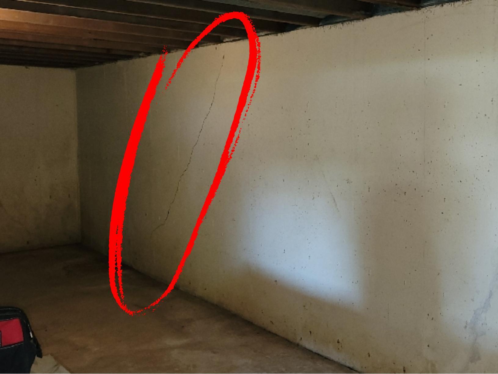 This home had a horizontal crack in the foundation wall from settling issues. We used a helical pier system to stabilize and lift the foundation. If you look at the blue tape on the before picture, you can see the gap in the wall. In the after photo, you can see that the gap is gone.