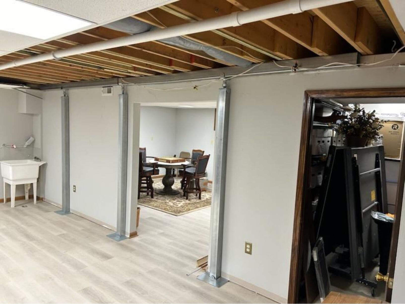 The main beam in the ceiling of this basement had become warped from excessive use. To add extra support and to stop the floors from sagging from the floor above, we installed SmartJacks and a supplemental beam across the main beam. The result was a success.